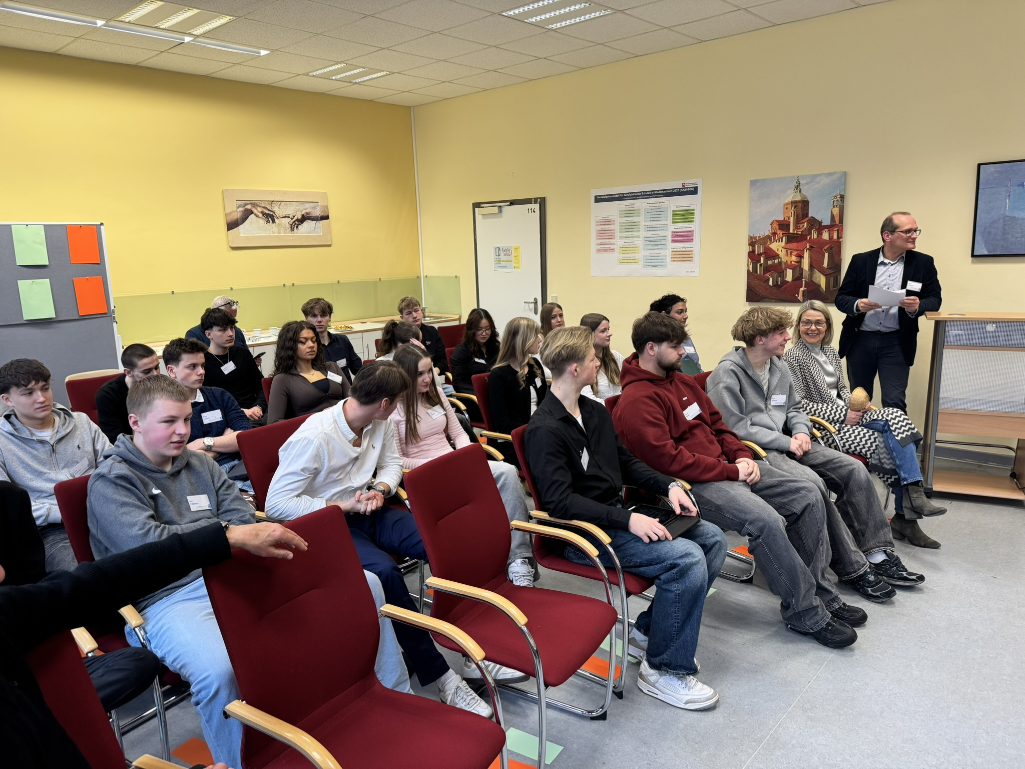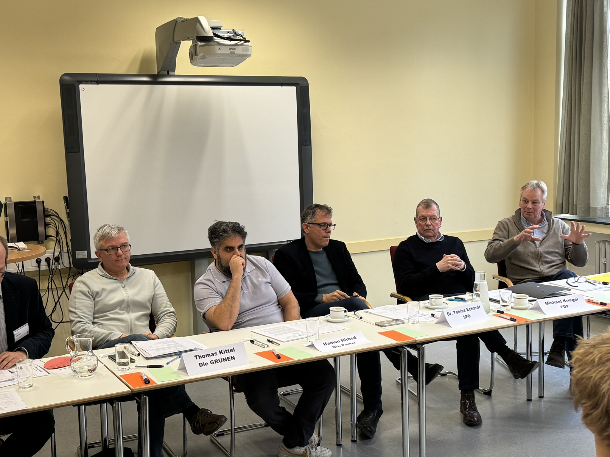 Am 23. Januar 2026 war es so weit: Unser Klassenraum wurde zum Schauplatz für echte Politik. Unter dem Motto „Hildesheim – unsere Stadt?!“ haben wir zur JungBürgerstunde geladen. Als Schülerinnen und Schüler standen wir diesmal nicht nur in der Zuhörerrolle, sondern haben den Politikerinnen und Politikern der Stadtratsfraktionen gezeigt, dass wir unsere Stadt aktiv mitgestalten wollen.